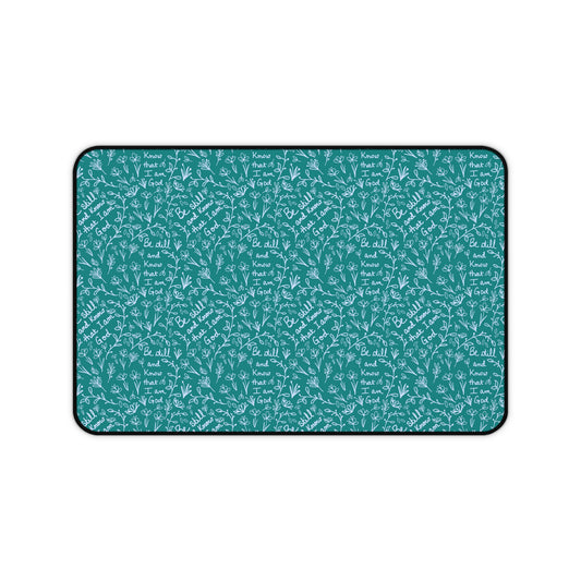 Teal Be Still and Know that I am God Floral Inspirational Desk Mat - Perfect for Home Office, Religious Themed, Christian decor
