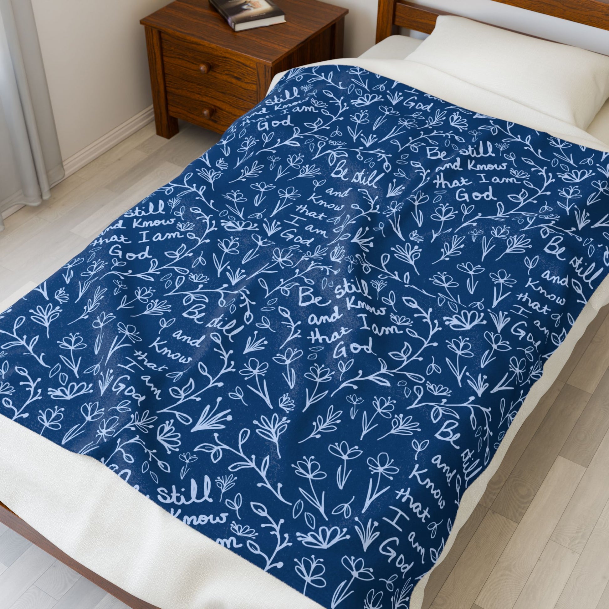 Blue Be Still and Know that I am God Faith-Inspired Velveteen Plush Blanket - Cozy Decorative Throw for Comfort, Spiritual Gifts, Home Décor, Relaxation, Gift Idea