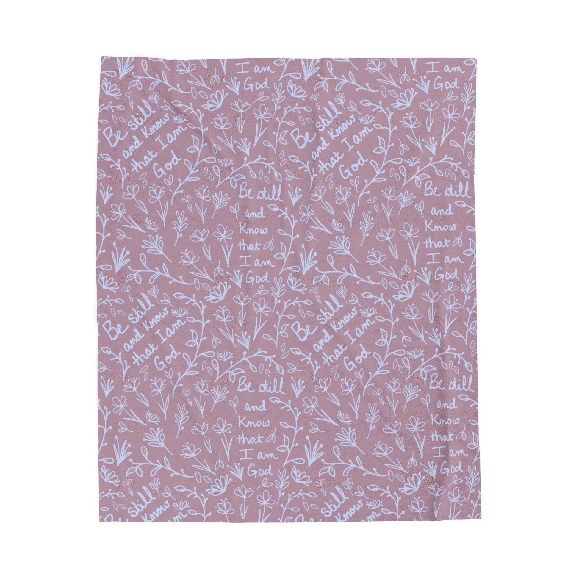 Blush Be Still and Know that I Am God Cozy Floral Velveteen Plush Blanket | Soft Throw for Home Decor, Gifts, Nursery, Relaxation, or Baby Showers