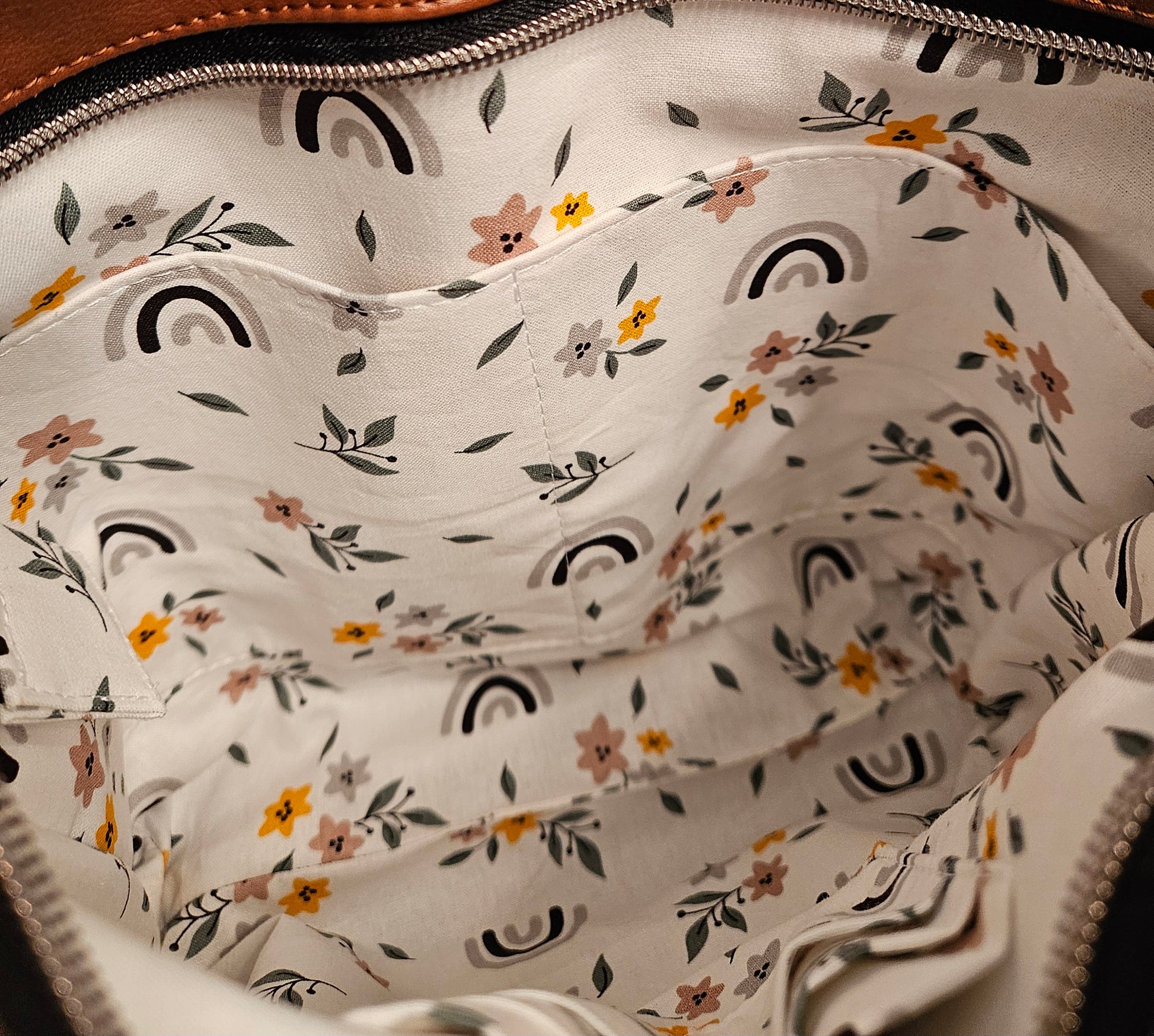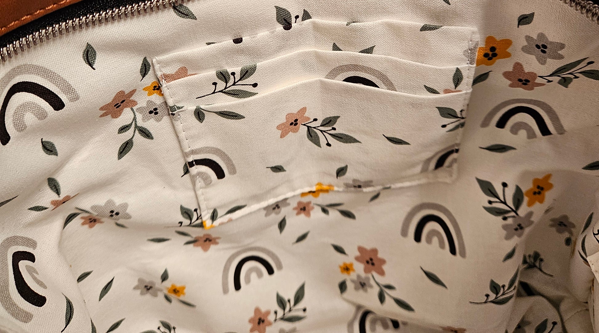 But it's not just about the aesthetics. The Catholic crossbody purse is also incredibly practical. With multiple pockets on the interior and exterior, you can easily organize your essentials, from your phone and wallet to your rosary and Bible. A zipper pocket and slip pocket are on the exterior. Two slip pockets and 3 card slots are in the interior with a fun rainbow pattern.