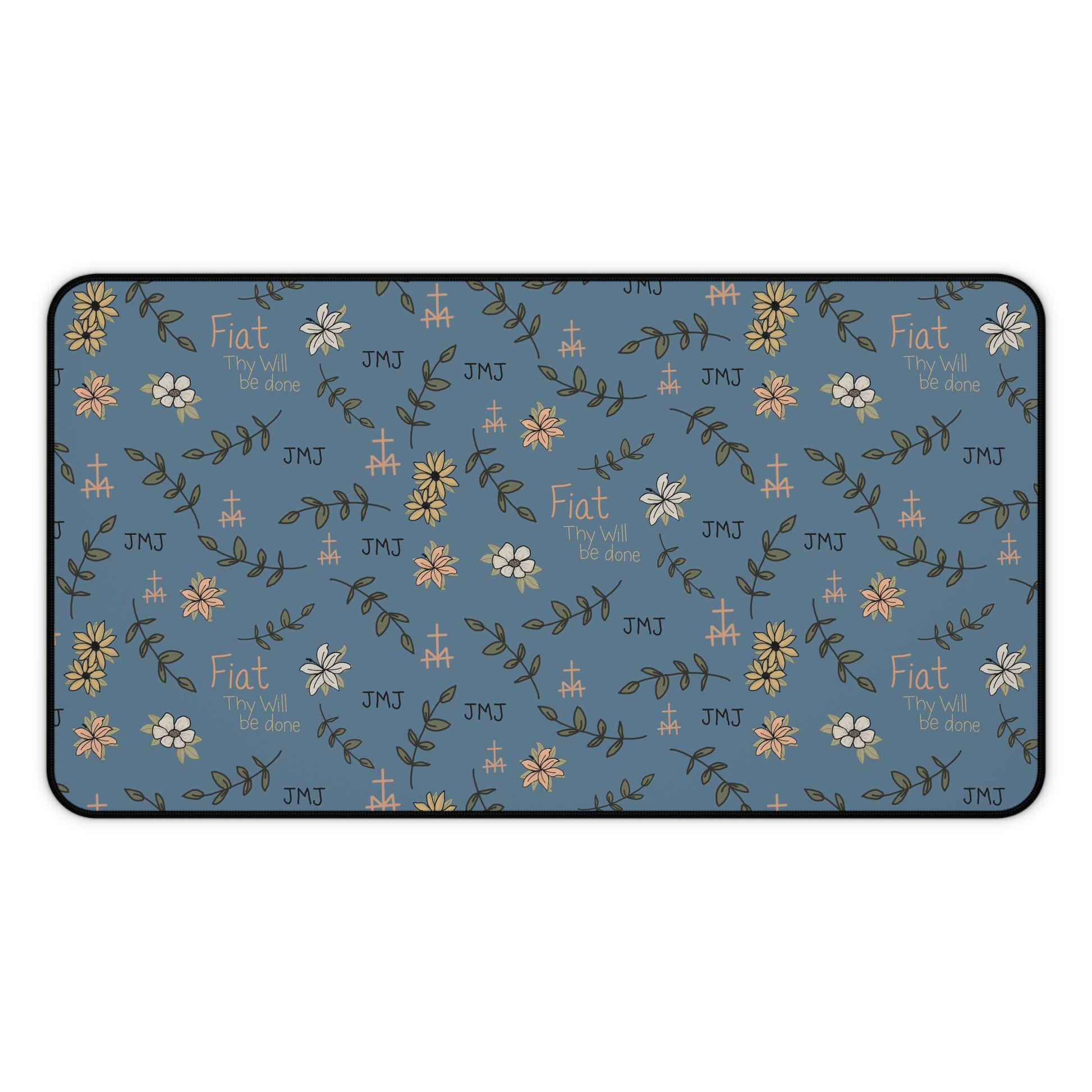 Fiat Thy Will be Done Floral Inspirational Desk Mat - Perfect for Home Office, Modern Decor, Gift for Graduates, Motivational Message, Floral Themed
