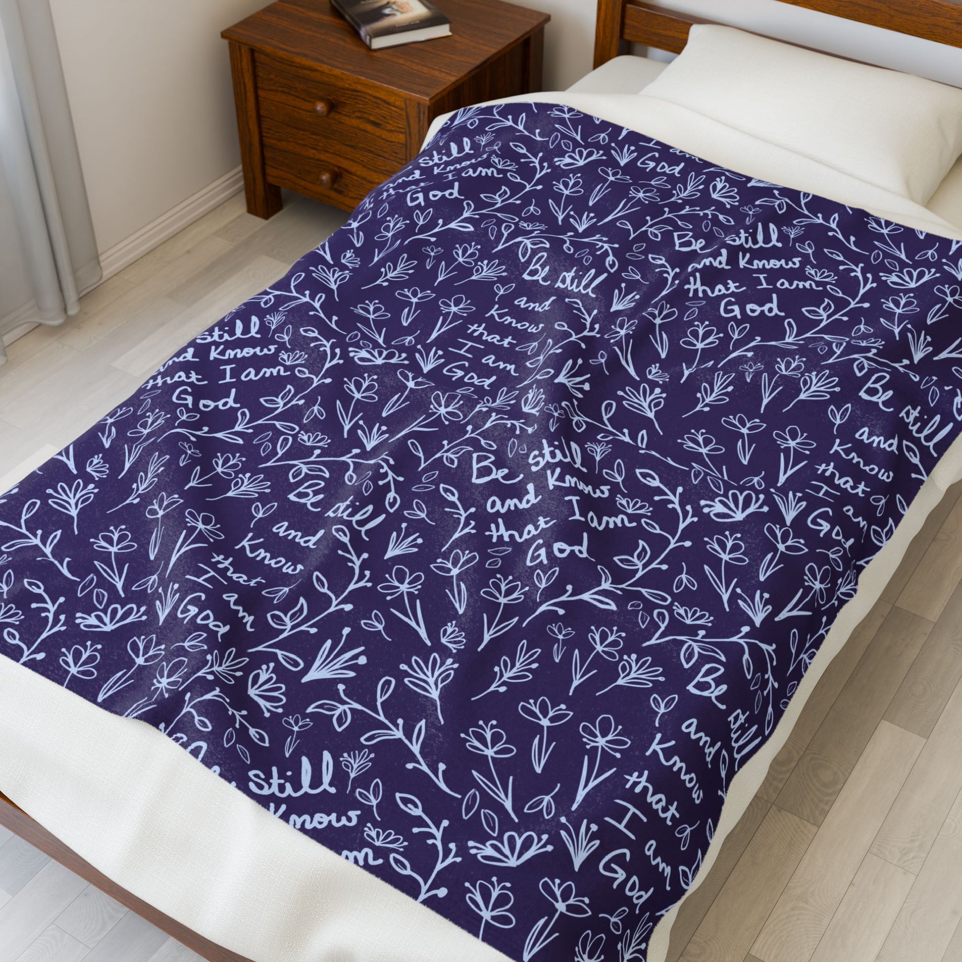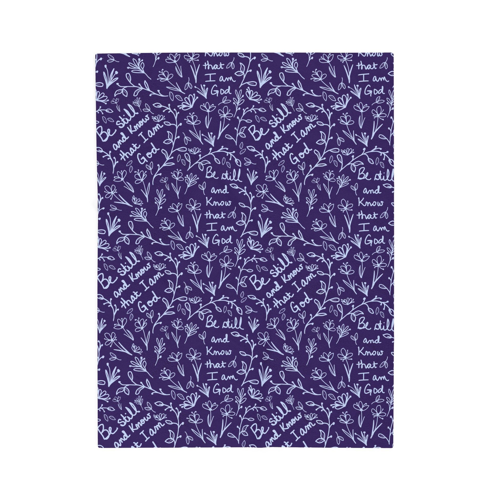 Purple Be Still and Know that I Am God Cozy Floral Velveteen Plush Blanket | Soft Throw for Home Decor, Gifts, Nursery, Relaxation, or Baby Showers