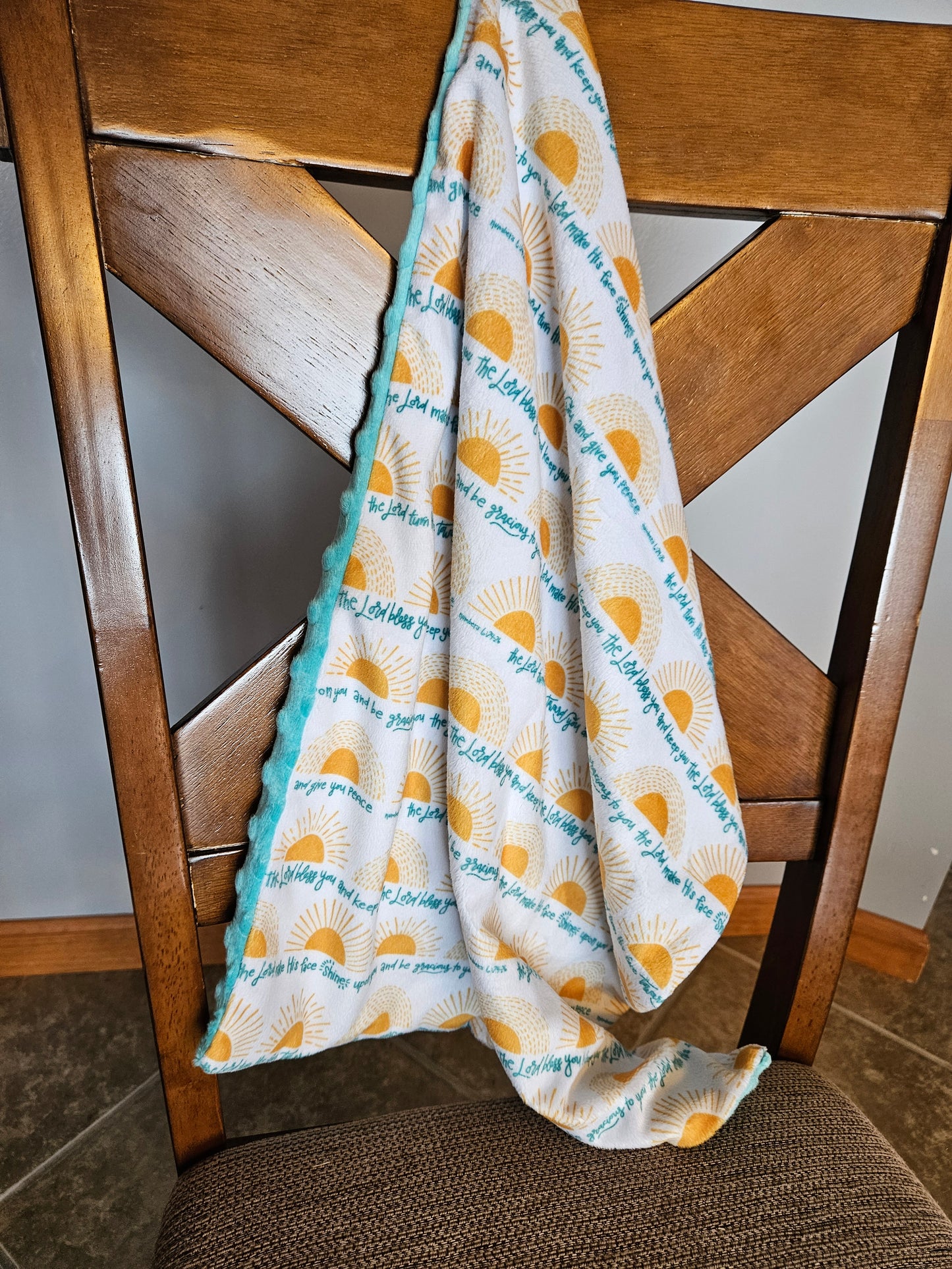 The Blessing of Aaron Numbers 6:22-27 is featured on this minky snuggie. "The Lord bless you and keep you. The Lord make His face shine upon you and be gracious to you. The Lord turn His face toward you and give you peace."