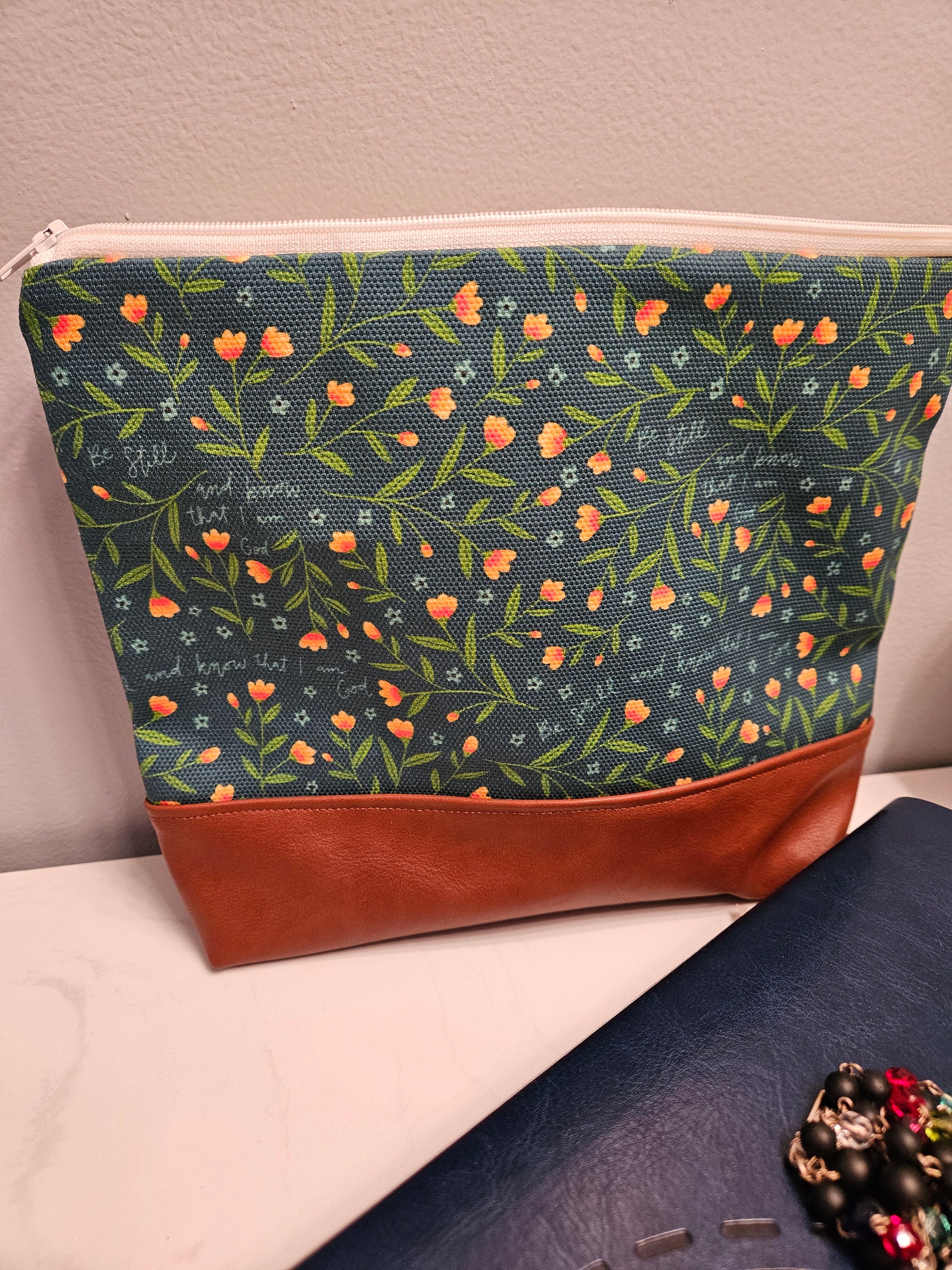 This chic bag is perfect for carrying cosmetics, toiletries, art supplies, sewing supplies and so much more. Use for chapel veils and prayer books, too!