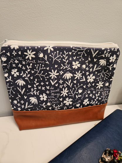 This chic bag is perfect for carrying cosmetics, toiletries, art supplies, sewing supplies and so much more. Use for chapel veils and prayer books, too!