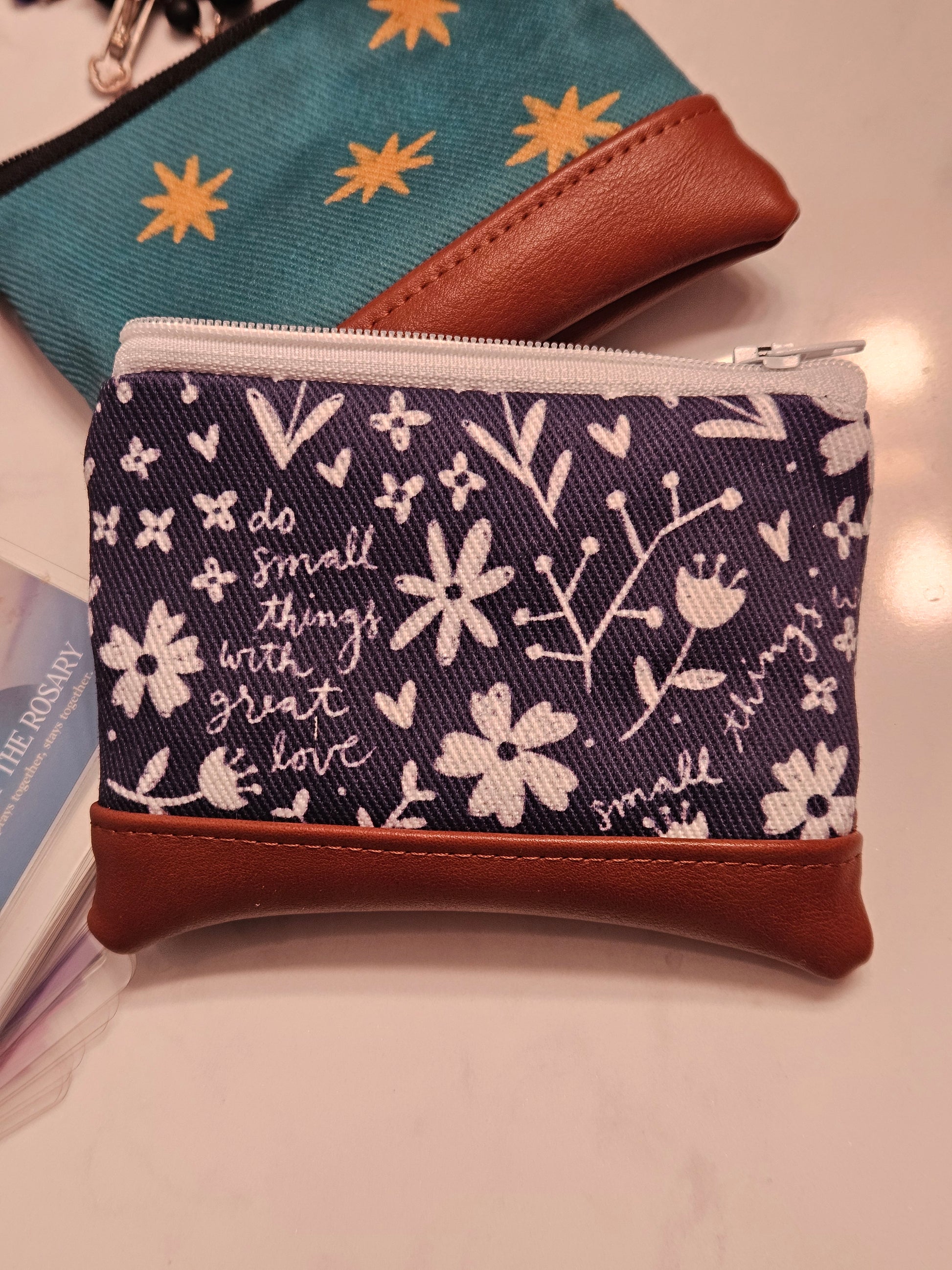Do Small Things Great Love Catholic fabric Rosary pouch Wallet