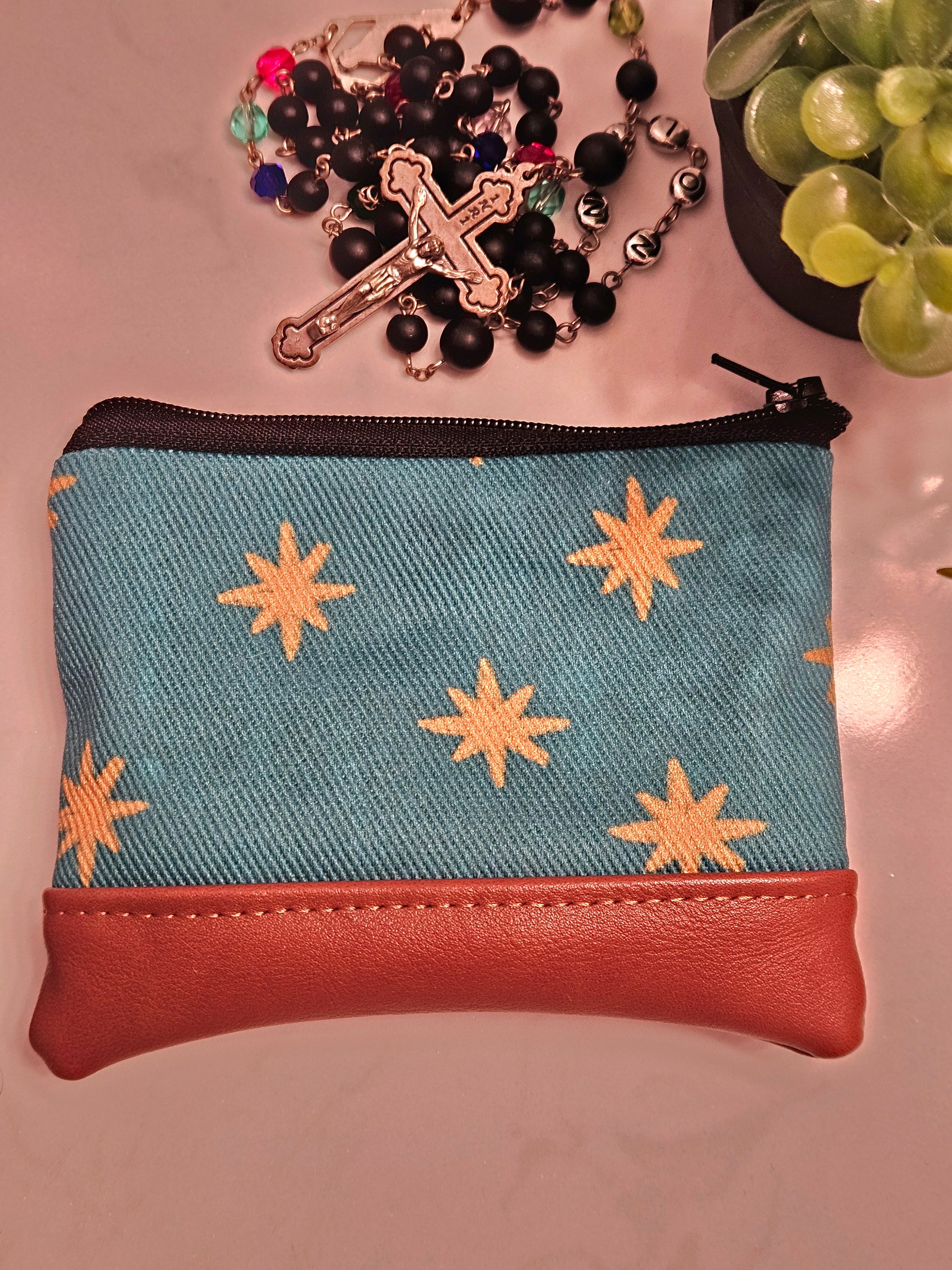 This is a small zippered pouch with the inspiration from Our Lady of Guadalupe and the stars on her veil.